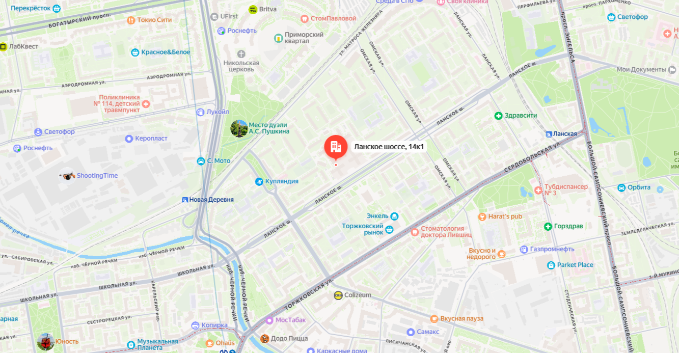 Будем рады видеть вас по адресу Ланское шоссе, 14к1, Санкт-Петербург, 197343